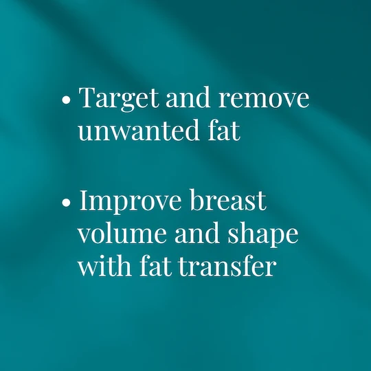 Is that great news? There is a way to fix this problem — using fat from other parts of the body. Patients enjoy a two for one, body contouring of possibly unwanted fat and enhancement of their breasts.